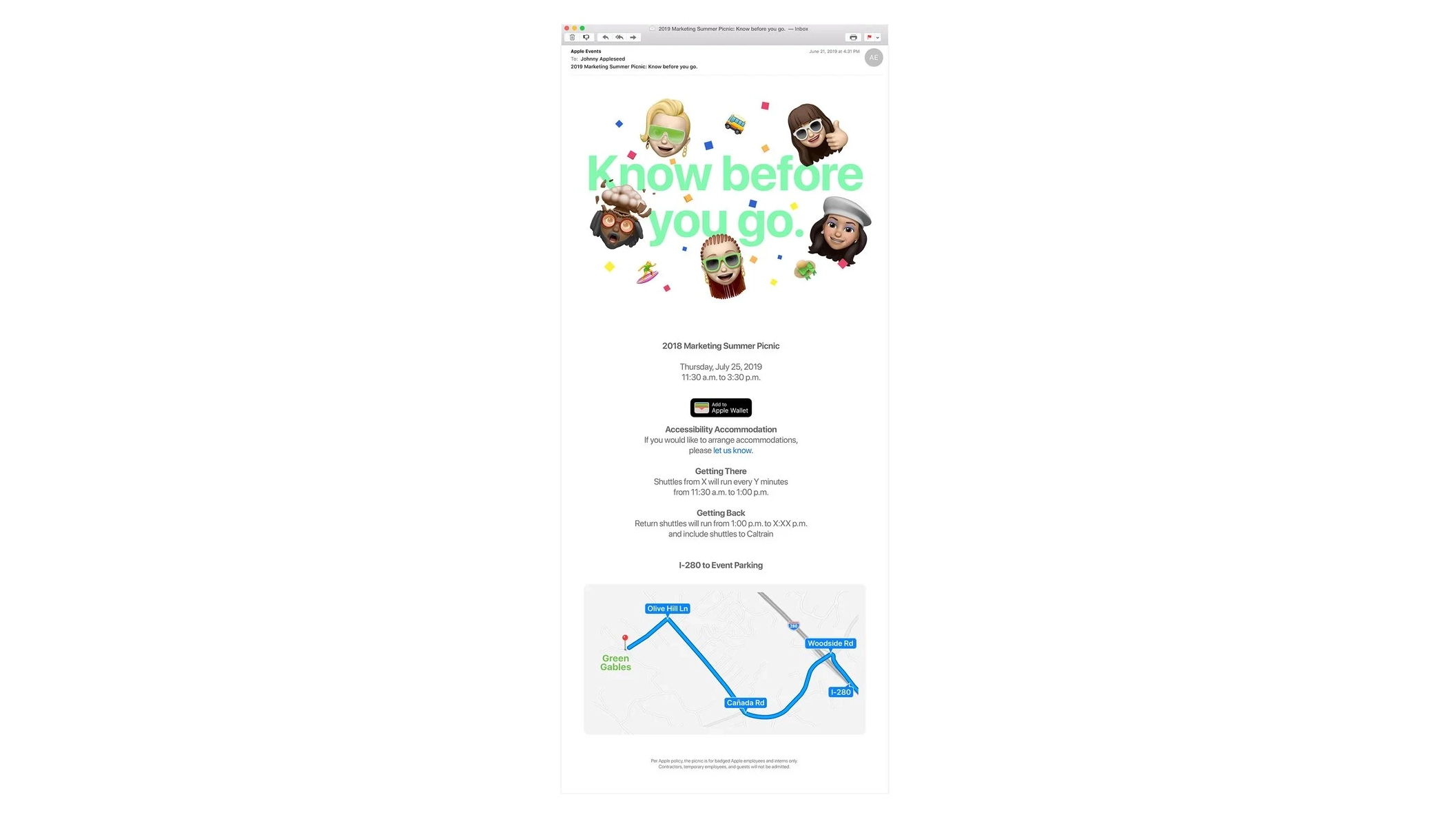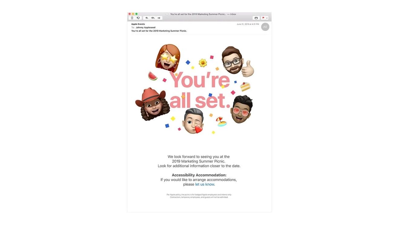 - Engagement and Information: Provide a seamless and engaging experience for Apple employees attending the Summer Marketing Picnic through a series of informative and interactive emails.