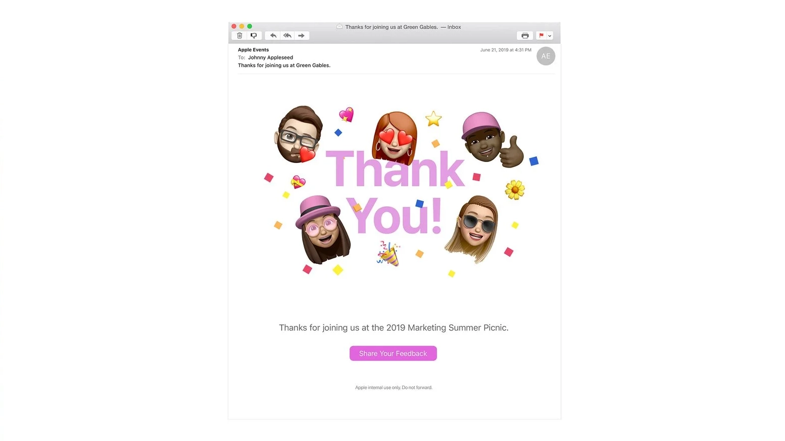 This project focused on designing and executing a multi-touch email campaign tailored specifically for Apple employees attending the Summer Marketing Picnic. The campaign aimed to enhance the picnic experience through interactive and informative emails, utilizing memojis stickers to commemorate the launch of iOS 13, a product many employees worked on.